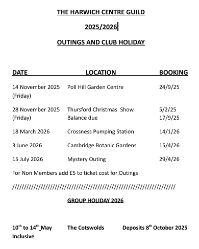 Meetings are held at The United Services Club, Barrack Lane, Dovercourt between 10.00am and 12 noon on most Wednesdays, but do check the programme inside.